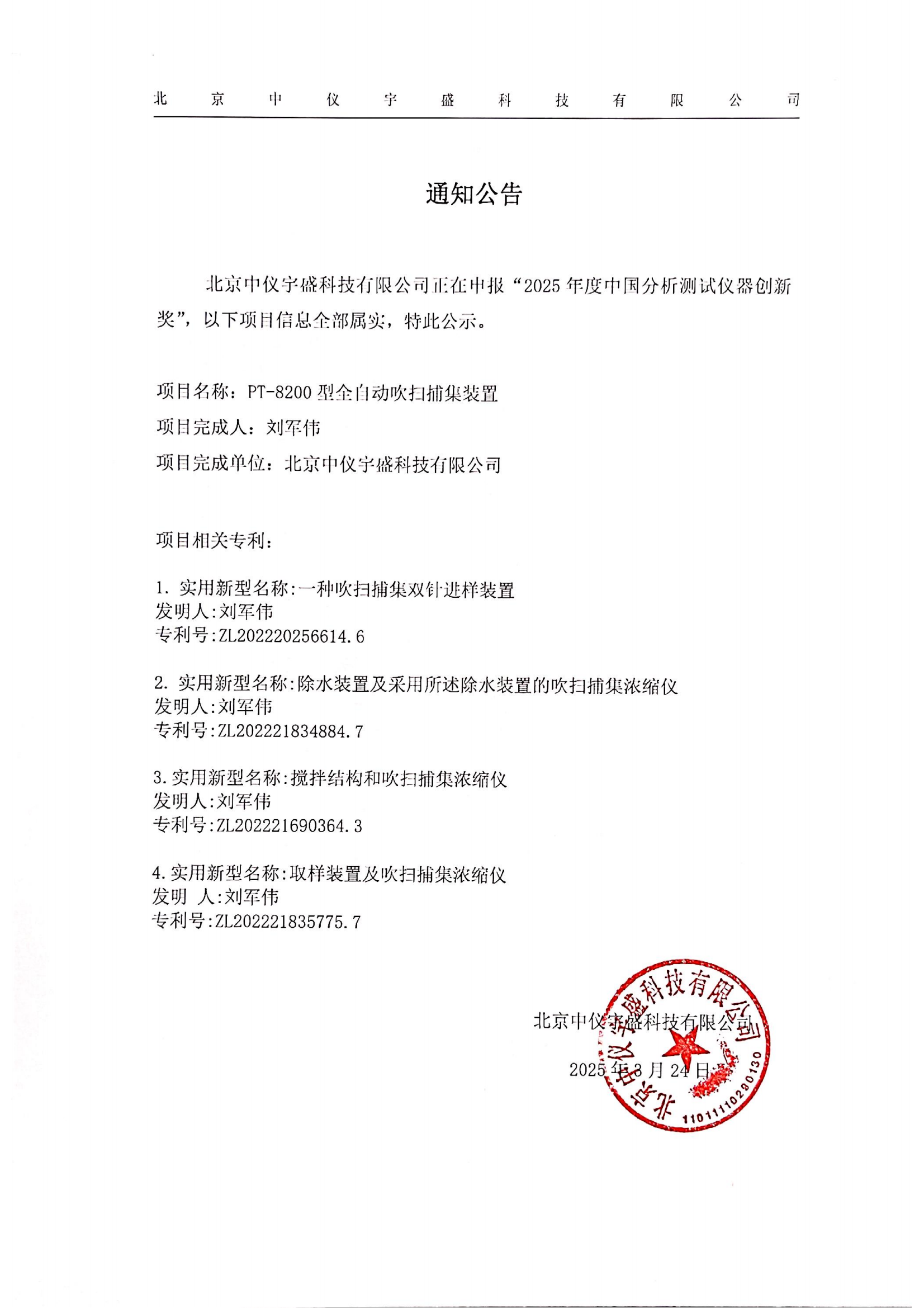 • 關于北京中儀宇盛申報“2025年度中國分析測試儀器創新獎”的 2025-03-24
